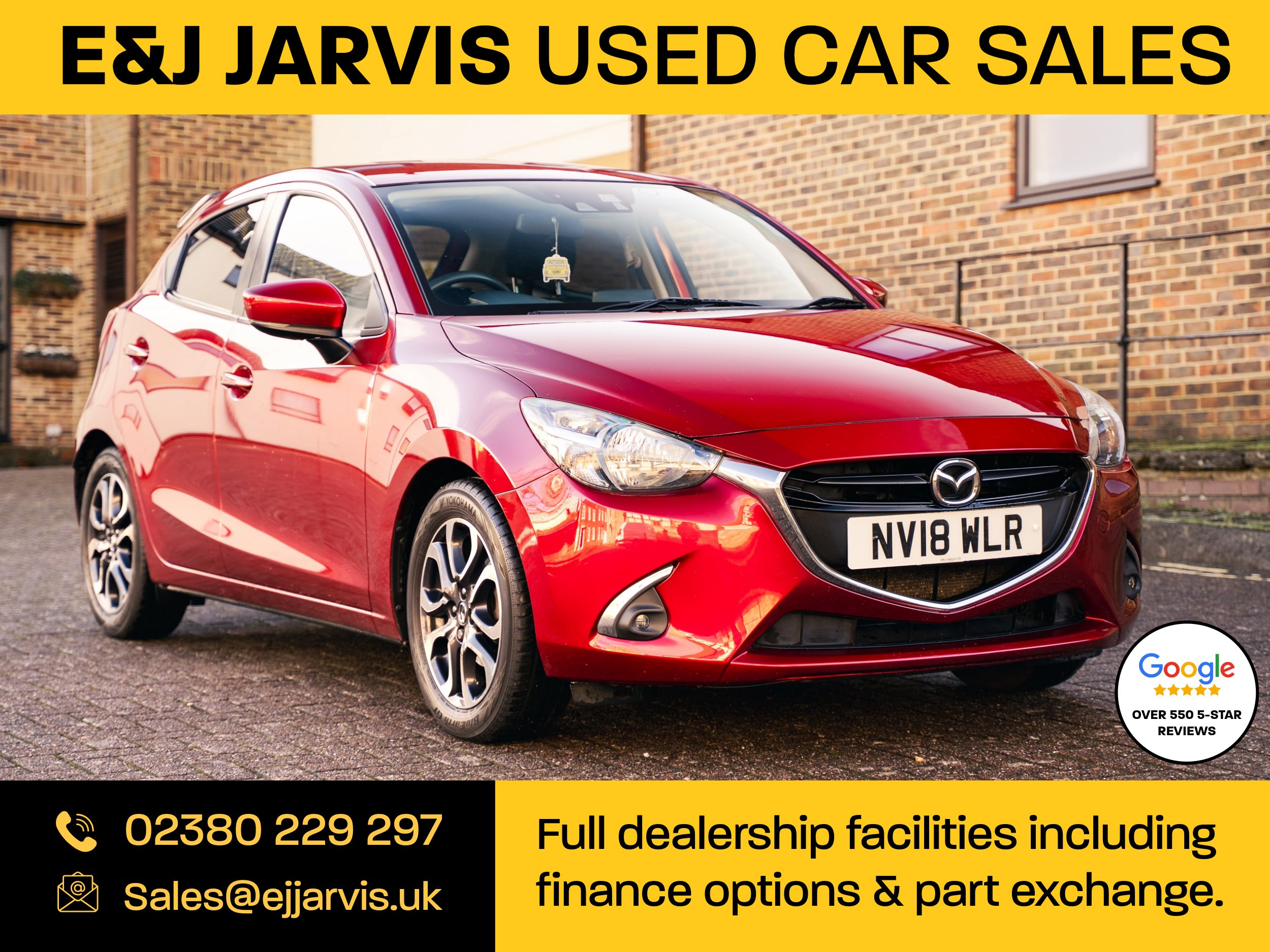 This 2018 Mazda 2 1.5 Skyactiv -G Sport Nav+ has covered 78,000 miles from new and comes with a full service history. This car has been well looked after by the previous owner and is presented in good condition with wear and tear in line with age and mileage. Finished in the beautiful Soul Red, features include media centre with integrated sat-nav, automatic halogen headlights, start-stop, rear parking sensors and more. This is an excellent choice as a used hatchback with a traditional 4 cylinder non-turbo engine and manual transmission that offers a simple and reliable driving experience. E&J Jarvis have been selling cars in Southampton since 1947 and offer full dealership facilities including part exchange and finance options. See our 550+ 5-star Google reviews. -