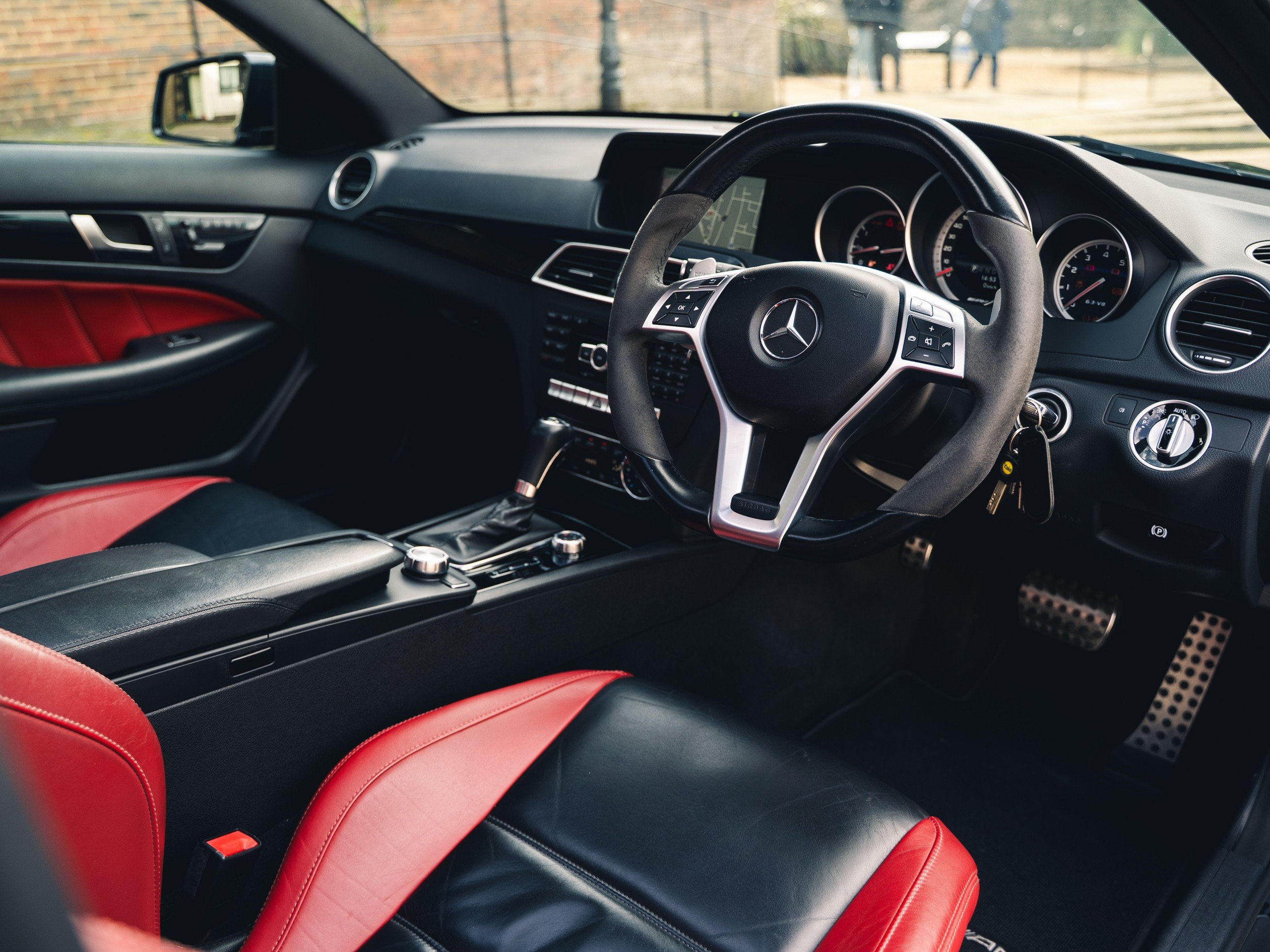This 2013 Mercedes-Benz C63 AMG has covered just over 69,500 miles from new and comes with a full service history including a recent major service as well as replacement front discs & pads. This is a rare example benefiting from a factory performance pack plus upgrade which includes a carbon boot spoiler, red painted calipers, upgraded engine components & a factory LSD. Other highlights include a red/black leather interior and ghost alarm system. Further performance upgrades such as an MSL performance stage 2 remap with IPE headers have also been professionally installed. The car also benefits from new exhaust manifold gaskets, lambda sensor and and injectors which were replaced in 2025 as well as recent LSD service for your peace of mind. This is a fantastic car that will make a great choice for the car enthusiast. Sold on behalf of our customer NOTE: viewing by appointment only as car not kept on site. Private reg will come off. -